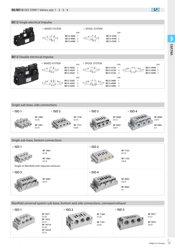 UNIVER對市場要求特別敏感,已在其生產(chǎn)計劃中引入了用于ISO底座的新系列閥門。這些閥門的尺寸和外觀相同,但有兩種不同的內(nèi)部開關(guān)系統(tǒng),可滿足氣動能量控制的最廣泛需求。這兩個系統(tǒng)保持了每個UNIVER產(chǎn)品的基本特性(高容量,短內(nèi)沖程,無潤滑),并且由于它們在使用中的互補性,它們可以完全滿足任何客戶的需求。