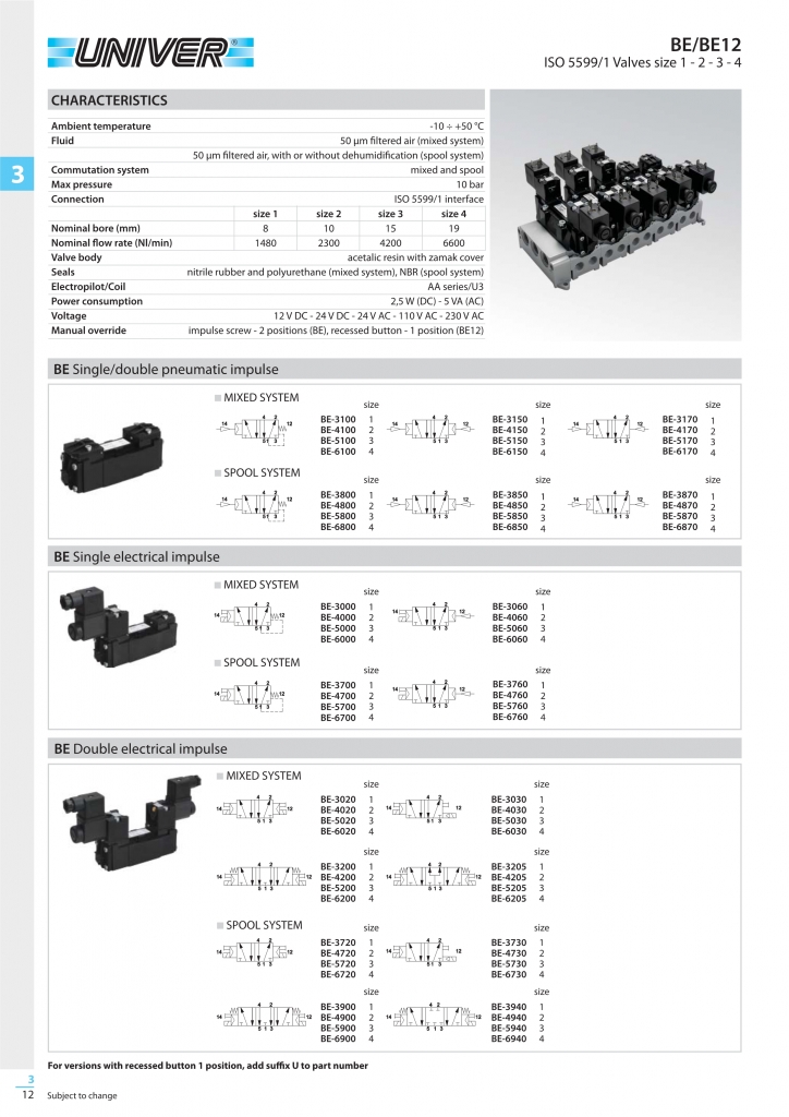 UNIVER電磁閥 BE系列電磁閥主要型號: BE-3000 , BE-3000A , BE-3000B , BE-3000D , BE-3000R , BE-3000T , BE-3000U , BE-3001 , BE-3020 , BE-3020A , BE-3020D , BE-3020R , BE-3020T , BE-3020U , BE-3030 , BE-3030U , BE-3050 , BE-3060 , BE-3060U , BE-3100 , BE-3100B , BE-3150 , BE-3150B , BE-3170 , BE-3170B , BE-3190 , BE-3190B , BE-3200 , BE-3205 , BE-3205R , BE-3205U , BE-3206 , BE-3700 , BE-3700D , BE-3700U , BE-3714 , BE-3714A , BE-3714D , BE-3714U , BE-3720 , BE-3720D , BE-3720U , BE-3730U , BE-3740D , BE-3760 , BE-3760U , BE-3761D , BE-3800 , BE-3820 , BE-3850 , BE-3850B , BE-3870 , BE-3870B , BE-3900 , BE-3900A , BE-3900D , BE-3900U , BE-3910U , BE-3930 , BE-3935 , BE-3940 , BE-3940A , BE-3940D , BE-3940U , BE-3941 , BE-3970 , BE-3972 , BE-3972A , BE-3974 , BE-3974A , BE-3976 , BE-3976A , BE-3978 , BE-3978A , BE-3990 , BE-3992 , BE-3993 , BE-3994 , BE-3995 , BE-3996 , BE-4000 , BE-4000A , BE-4000D , BE-4000R , BE-4000T , BE-4000U , BE-4020 , BE-4020A , BE-4020D , BE-4020R , BE-4020T , BE-4020U , BE-4030 , BE-4030U , BE-4050 , BE-4060 , BE-4060U , BE-4100 , BE-4100B , BE-4150 , BE-4150B , BE-4170 , BE-4170B , BE-4200 , BE-4205 , BE-4205U , BE-4205UB , BE-4700 , BE-4700U , BE-4714 , BE-4714D , BE-4714U , BE-4720 , BE-4720D , BE-4720U , BE-4730 , BE-4730U , BE-4760 , BE-4760U , BE-4800 , BE-4820 , BE-4850 , BE-4850B , BE-4870 , BE-4870B , BE-4900 , BE-4900D , BE-4900U , BE-4930 , BE-4935 , BE-4940 , BE-4940A , BE-4940D , BE-4940R , BE-4940U , BE-4970 , BE-4972 , BE-4972A , BE-4974 , BE-4974A , BE-4976 , BE-4976A , BE-4978 , BE-4978A , BE-4990 , BE-4992 , BE-4993 , BE-4994 , BE-4995 , BE-4996 , BE-5000 , BE-5000A , BE-5000D , BE-5000R , BE-5000U , BE-5020 , BE-5020A , BE-5020R , BE-5020U , BE-5030 , BE-5030U , BE-5060 , BE-5060U , BE-5100 , BE-5150 , BE-5150B , BE-5170 , BE-5170B , BE-5200 , BE-5205 , BE-5205U , BE-5700 , BE-5700R , BE-5700U , BE-5714 , BE-5714D , BE-5714U , BE-5720 , BE-5720D , BE-5720U , BE-5730 , BE-5730U , BE-5760 , BE-5760U , BE-5800 , BE-5820 , BE-5850 , BE-5850B , BE-5870 , BE-5870B , BE-5900 , BE-5900A , BE-5900U , BE-5930 , BE-5935 , BE-5940 , BE-5940A , BE-5940R , BE-5940U , BE-5970 , BE-5972 , BE-5972A , BE-5974 , BE-5974A , BE-5976 , BE-5976A , BE-5978 , BE-5978A , BE-5990 , BE-5992 , BE-5993 , BE-5994 , BE-5995 , BE-5996 , BE-6000 , BE-6000A , BE-6000D , BE-6000U , BE-6020 , BE-6020A , BE-6020R , BE-6020U , BE-6030 , BE-6030U , BE-6060 , BE-6060U , BE-6100 , BE-6150 , BE-6150B , BE-6170 , BE-6170B , BE-6200 , BE-6205 , BE-6205D , BE-6205U , BE-6700 , BE-6700R , BE-6700U , BE-6714 , BE-6714A , BE-6714U , BE-6720 , BE-6720U , BE-6730 , BE-6730U , BE-6760 , BE-6760U , BE-6800 , BE-6820 , BE-6850 , BE-6850B , BE-6870 , BE-6870B , BE-6900 , BE-6900U , BE-6930 , BE-6940 , BE-6940A , BE-6940U , BE-6970 , BE-6972 , BE-6972A , BE-6974 , BE-6974A , BE-6976 , BE-6976A , BE-6978 , BE-6978A , BE-6990 , BE-6992 , BE-6993 , BE-6994 , BE-6995 , BE-6996