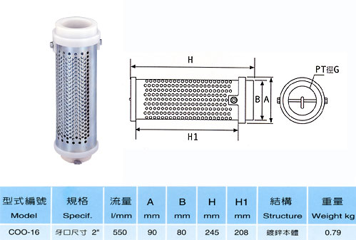 CLC氣泡消除器(擴散器)部分常規(guī)型號參考:COO-16