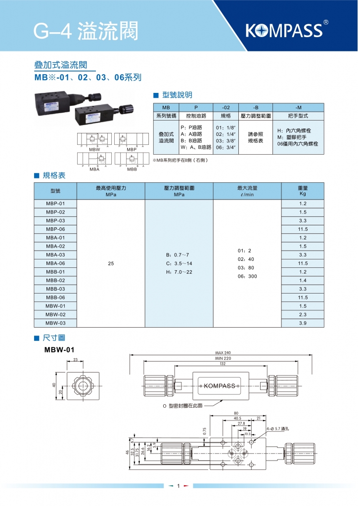 KOMPASS康百世疊加閥 MBP,MBA,MBB,MBW系列疊加式溢流閥