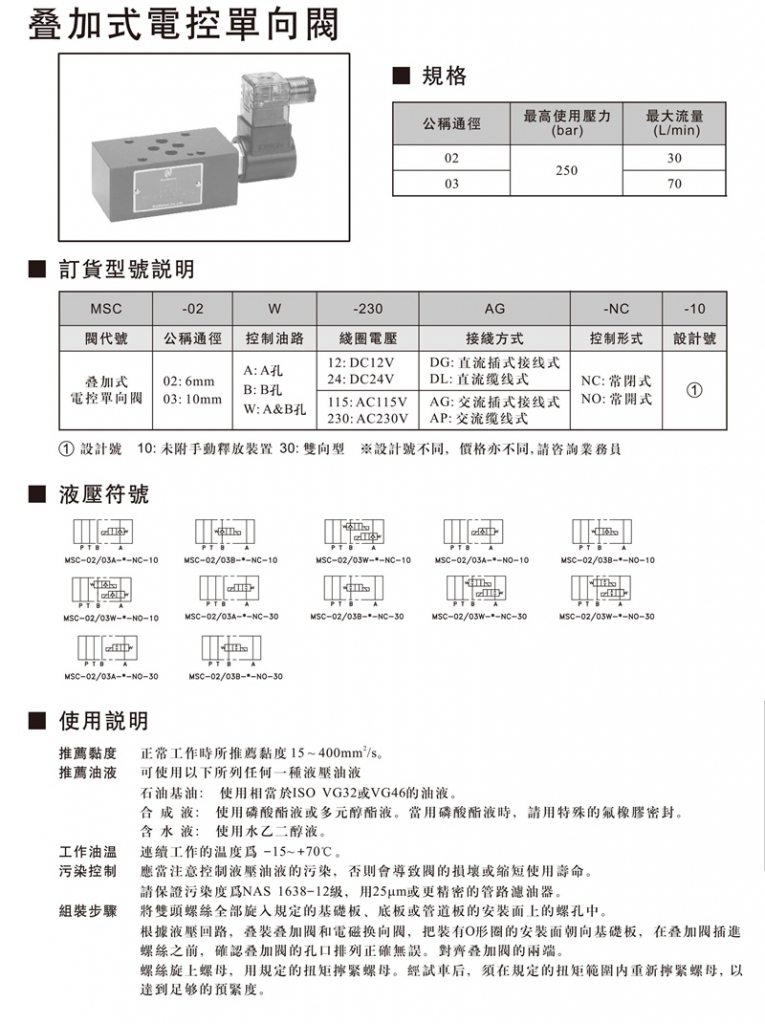 NORTHMAN北部精機疊加閥 MSC-02,03系列疊加式電控單向閥