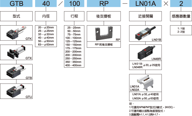 ●導桿缸GTB(U)(X)?32~?63一律附有端點可調式緩衝