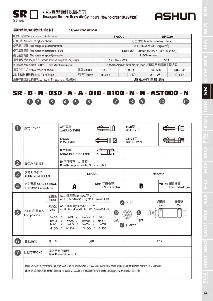| 氣壓缸內(nèi)徑 | SR?20 | SR?30 | |||